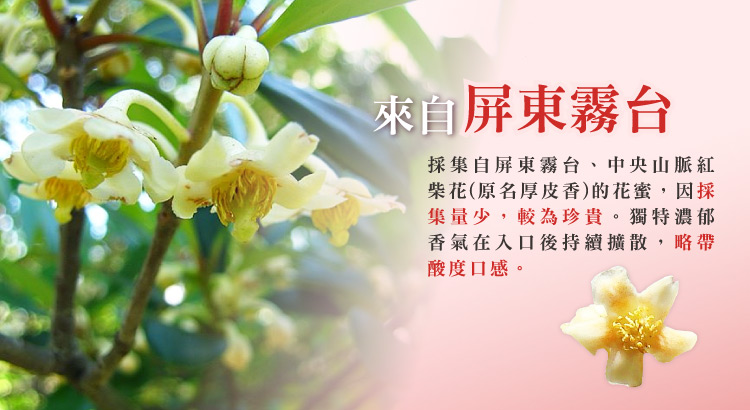 採集自屏東霧台、中央山脈紅柴花(原名厚皮香)的花蜜