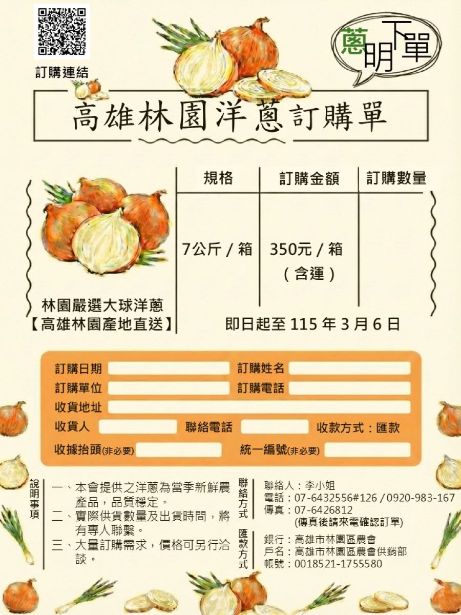 一、林園區農會提供之洋蔥為當季新鮮農產品,品質穩定。