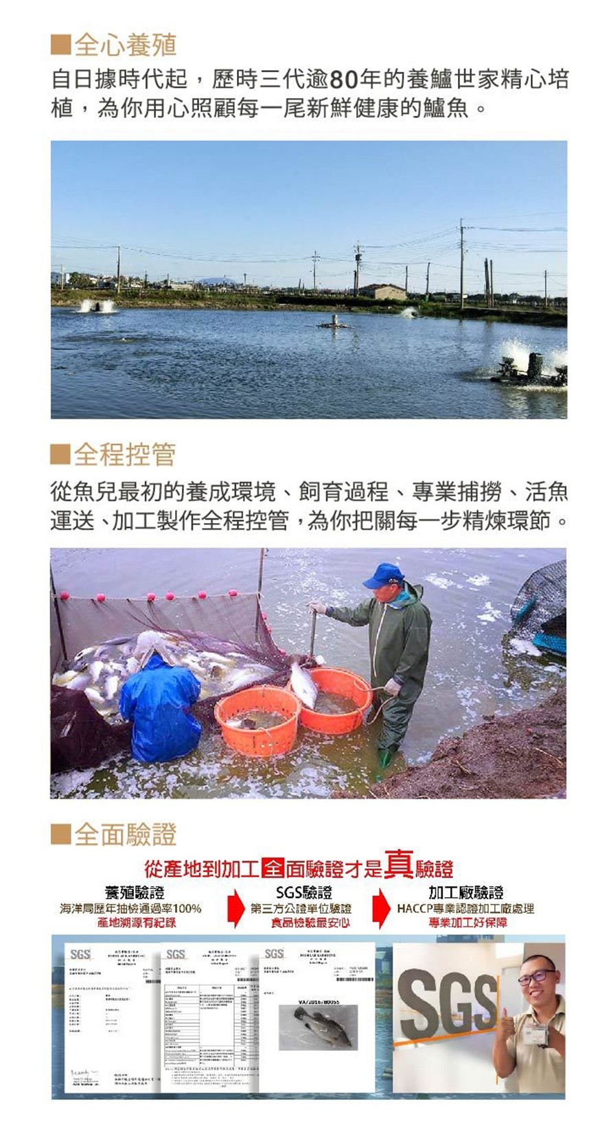 專精於類生態友善環境的鱸魚養殖,從產地到加工,全面驗證讓您買的放心、吃的安心