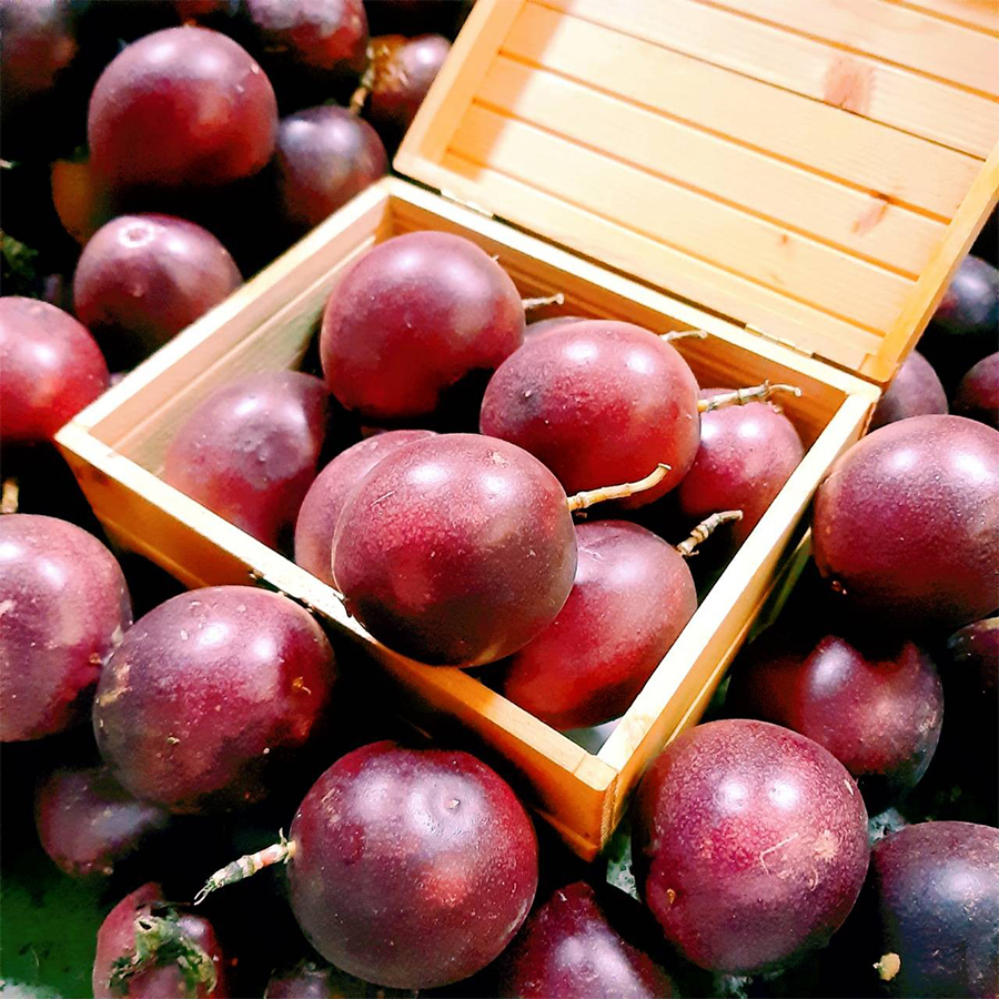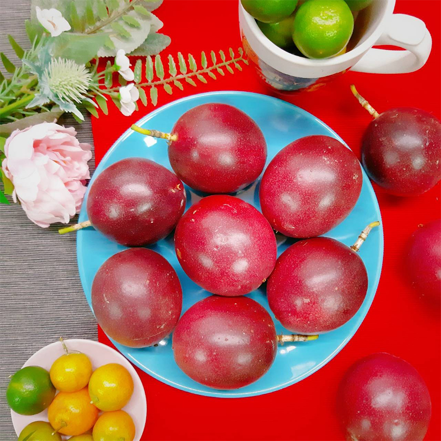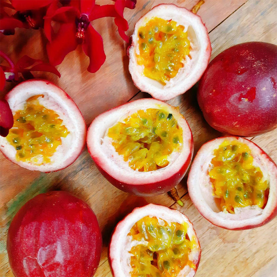 百香果由鮮紅轉深紅偏黑,果皮表面偏軟且微皺時風味最佳!顏色轉變大概還需要2~3天的時間。