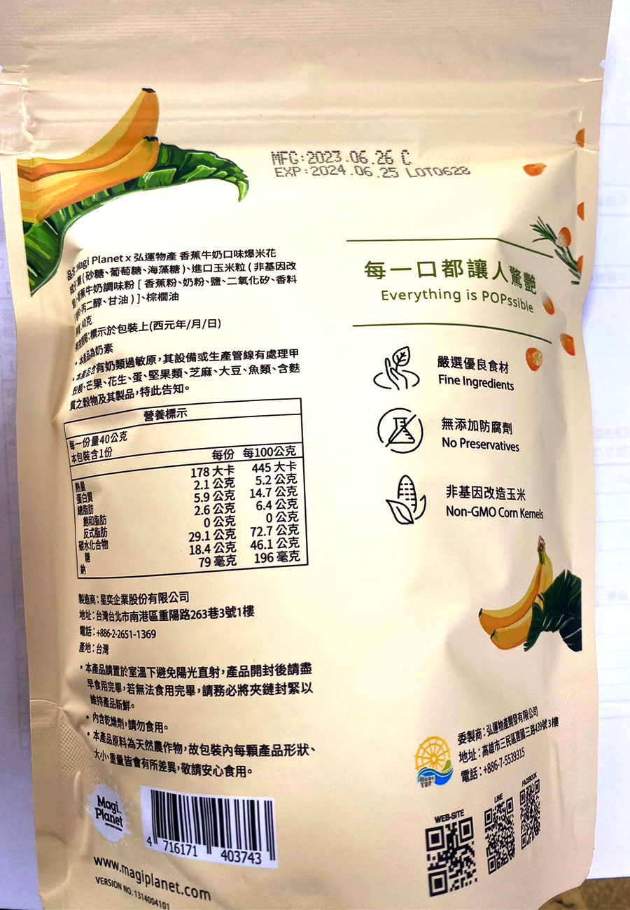 【香蕉爆米花 6包/組】