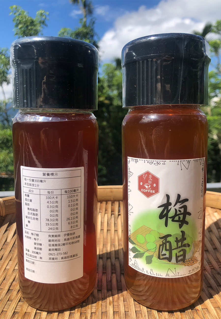 梅子是種植於海拔800餘公尺的那瑪夏區瑪雅平台,梅子醋是以純糯米醋、冰糖、梅子三種材料製成,先清洗梅子後再用牙籤將蒂頭去除,再把梅子晾乾一夜,把玻璃瓶洗淨經高溫日曬殺菌,確認瓶子和梅子無水份乾燥狀態。用一層梅子一層冰糖方式堆壘;倒入糯米醋務必蓋過梅子讓梅子浸泡在醋裡面,賞味期至少一年以上,釀製時間的長短會直接影響味道的濃郁,可開胃、促進食慾、幫助消化、促進新陳代謝、滋補強身、養顏美容。