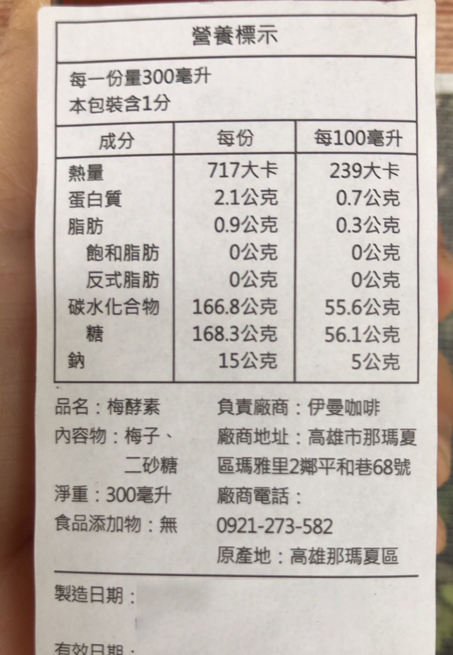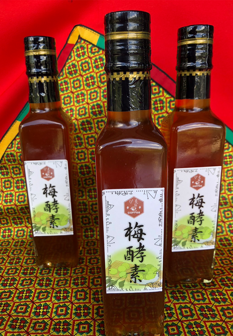 梅子是種植於海拔800餘公尺的那瑪夏區瑪雅平台,是選擇5~9份熟的梅子(無農藥無化肥),洗淨後晾乾,先用一份砂糖一層糖一層梅放入甕中,最上層蓋滿糖,封口,每天攪拌連續45天,最初約10天每次攪完最上層補蓋糖到剩下一半的糖用完,密封靜置4~5月,過濾撈掉粕,所得梅汁就是梅酵素,稀釋可10~15倍飲用,可減少腸胃脹氣,改善便秘,有助促進新陳代謝,可提升免疫功能。