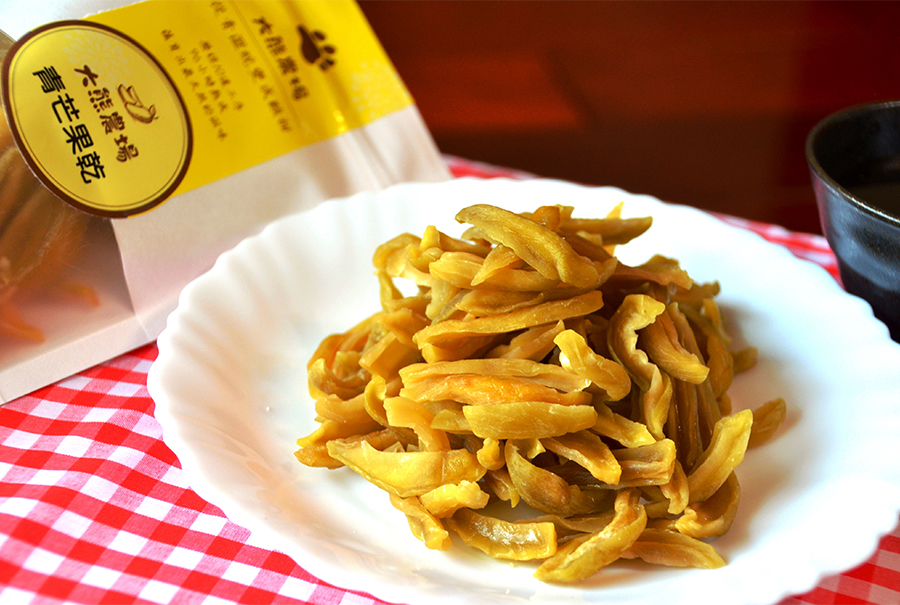 選擇樹梢上最青嫩的愛文青芒果,從摘採、洗淨、削皮、切片、去澀、醃製、佐以甘梅提升口味層次感,歷經96小時熟成、10道工序,全程只有糖、鹽與青芒果的巧妙變化後,再以低溫烘烤12小時,才能蘊育出青澀蛻變成酸甜的天然滋味。