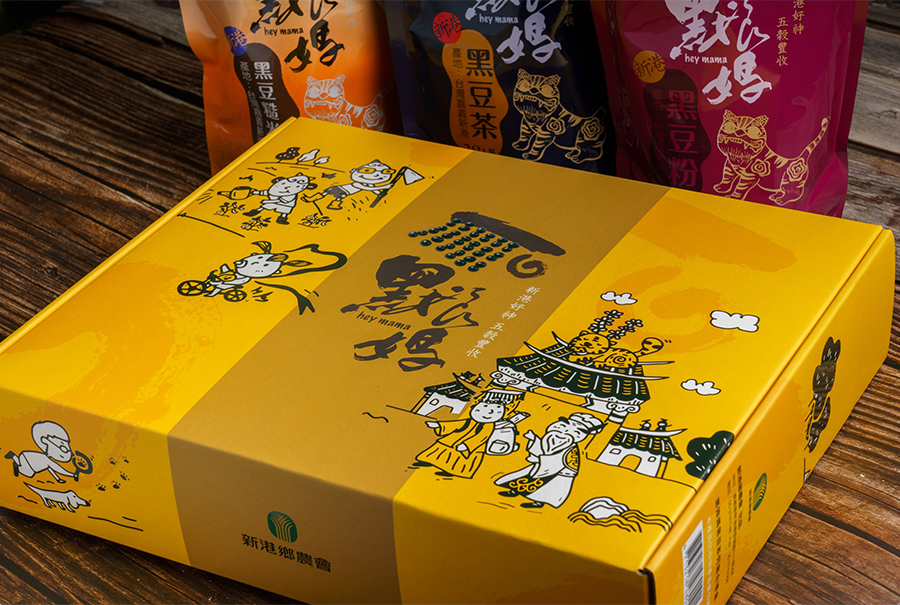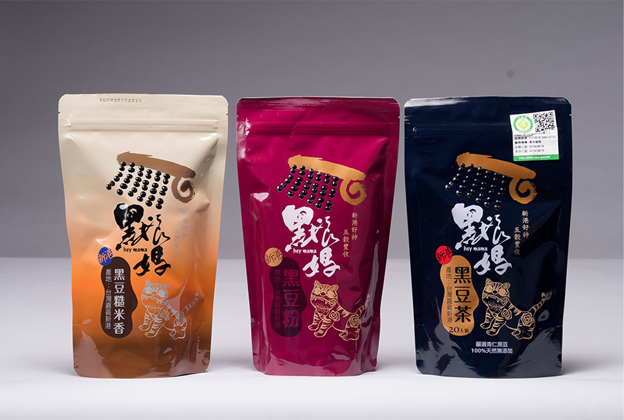 我們嚴選代工廠商,陸續開發黑豆系列產品-蔭油、蔭油膏、黑豆茶、黑豆粉等,讓消費者有更多元的選擇,並以新港鄉在地媽祖信仰為核心,設計在地品牌「黑娘媽」,並隆重在觀摩會中發表上市,期許新港好神讓新港在地農產五穀豐收,保證民眾享用可靠實在的農特產品。