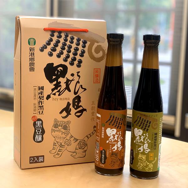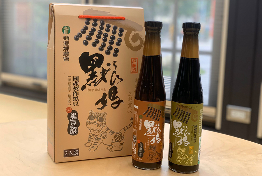 我們嚴選代工廠商,陸續開發黑豆系列產品-蔭油、蔭油膏、黑豆茶、黑豆粉等,讓消費者有更多元的選擇,並以新港鄉在地媽祖信仰為核心,設計在地品牌「黑娘媽」,並隆重在觀摩會中發表上市,期許新港好神讓新港在地農產五穀豐收,保證民眾享用可靠實在的農特產品。
