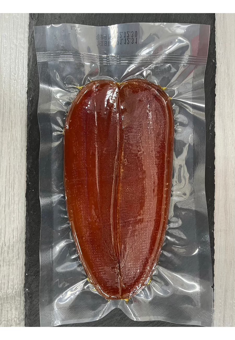 野生烏魚子,全程專業師傅純手工製作,色澤精透,口感Q彈不黏牙,鹹度適中。