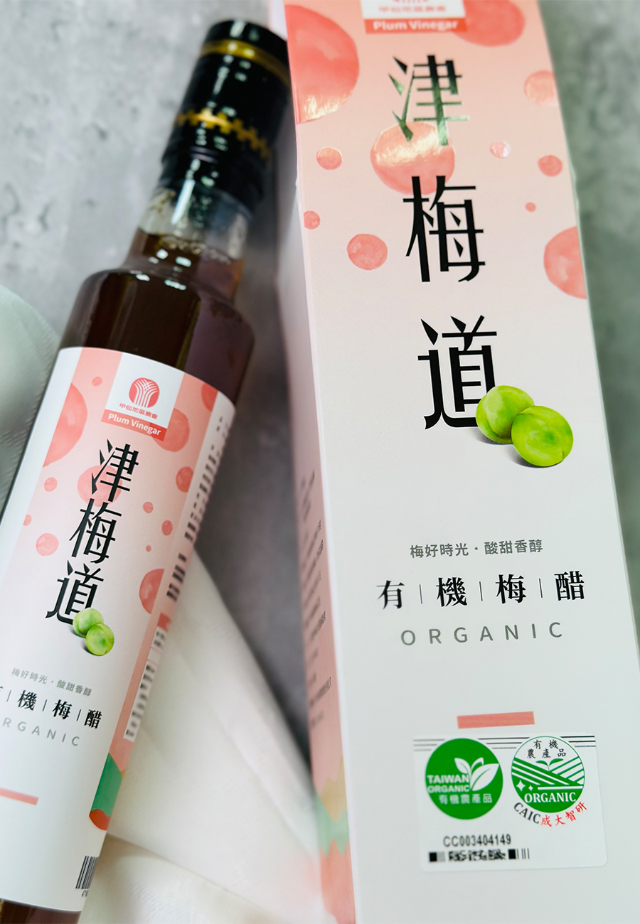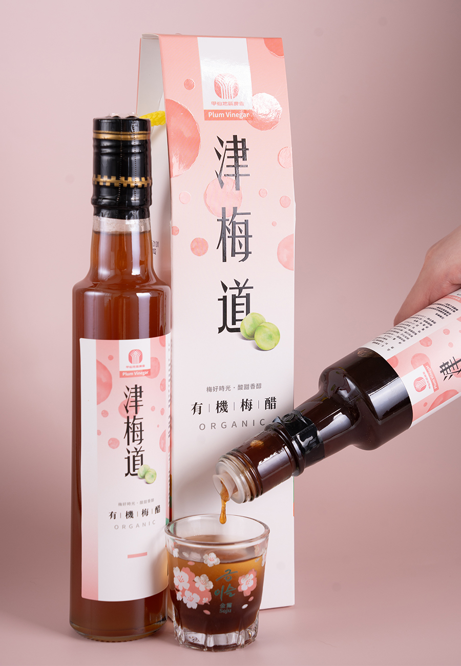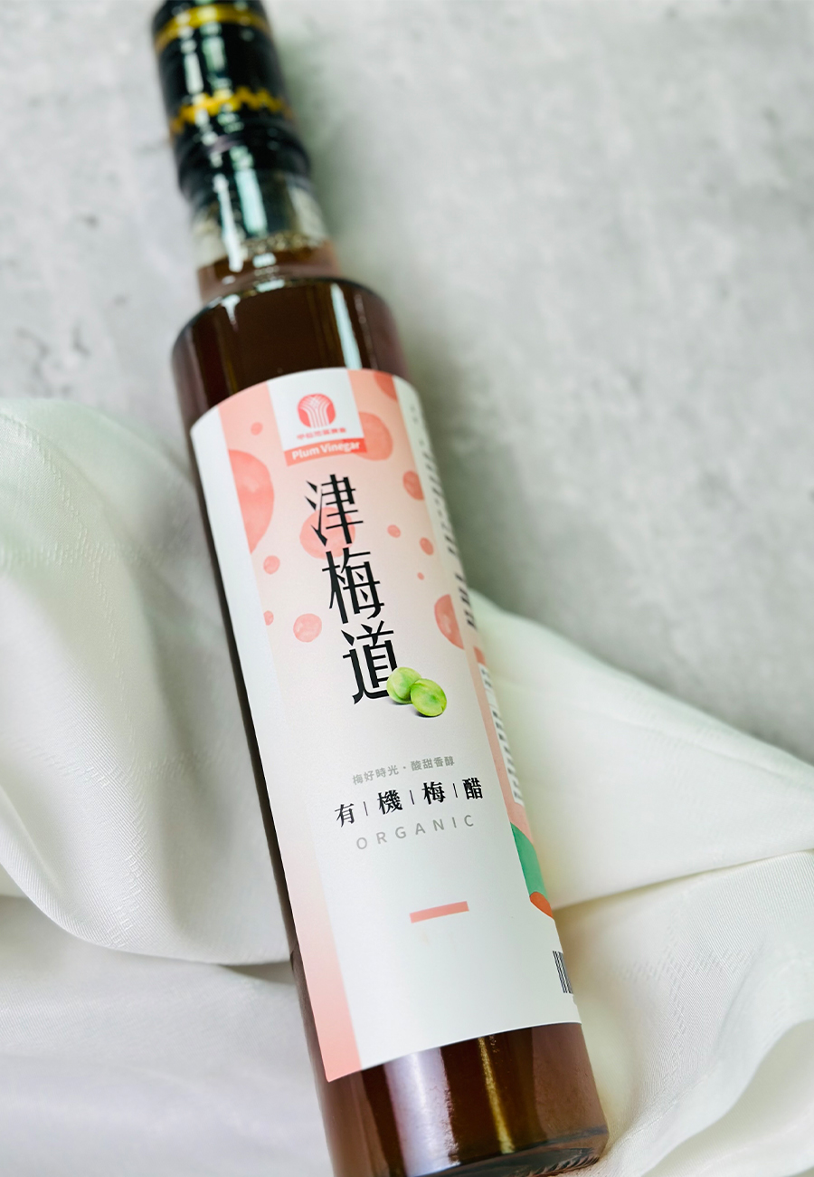 生產的梅醋使用黃梅全果漿,因添加<有機紅蔗糖>,呈現出自然焦糖風味,加上梅子本身水蜜桃香氣,更增加了口感上的層次。