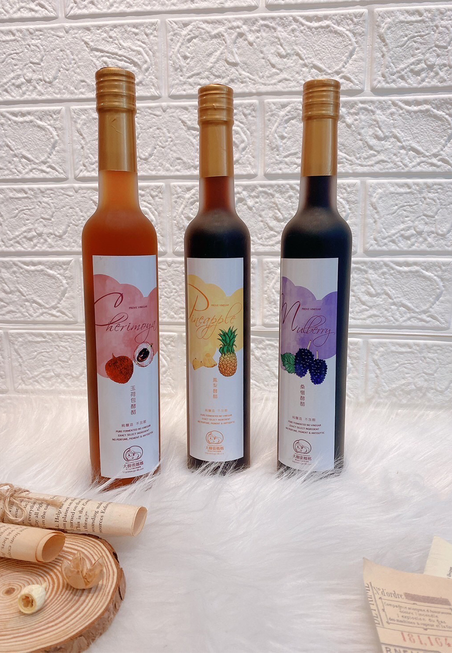 將新鮮水果釀成水果酒.再加入醋菌將水果酒中的乙醇轉化成無糖水果酵醋