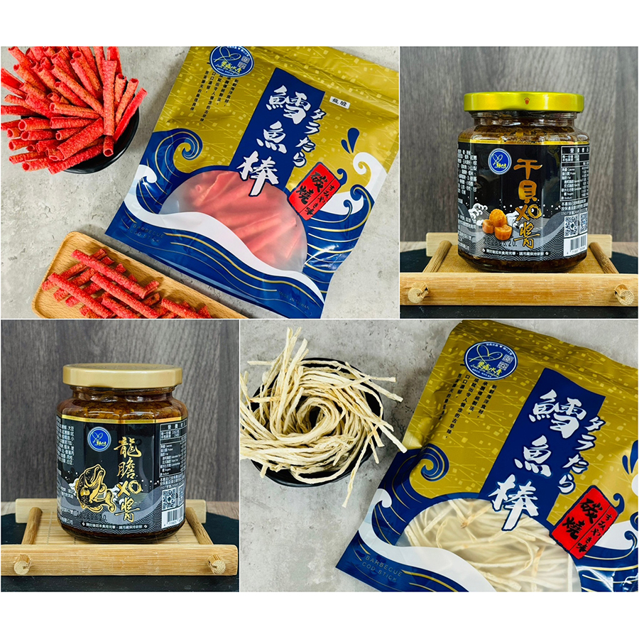 烤食蔬的同時,讓你也能吃的到海味,加入一杓龍膽干貝XO醬,將蔬菜口感提升一個檔次。還有烤肉等待之餘,與朋友一同來分享古早味零嘴-鱈魚香絲和鱈魚棒~加入龍膽,多了一分鮮甜的滋味。