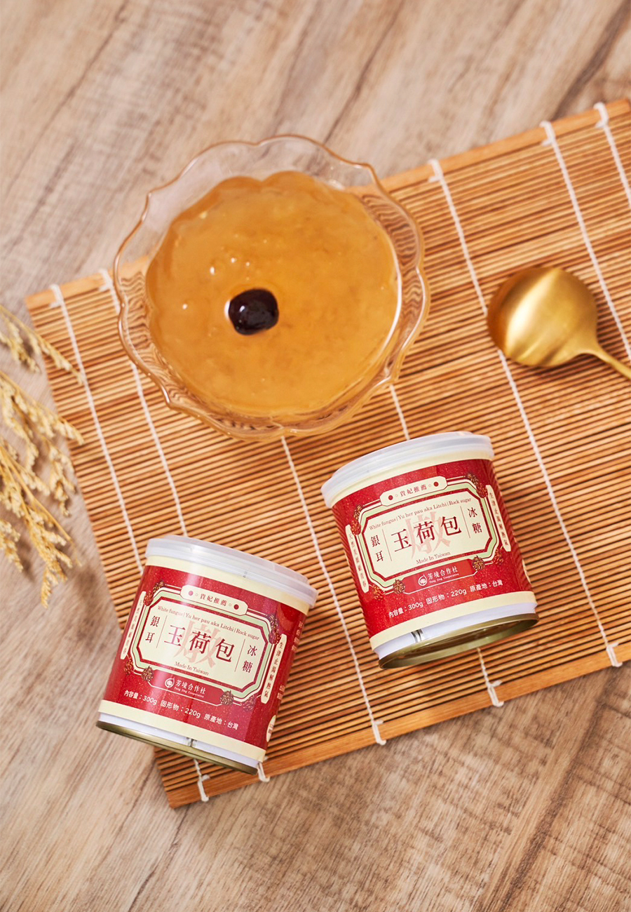嚴選頂級玉荷包+素燕窩銀耳+養身紅棗+純正冰糖。先將銀耳燉煮4小時後再放入整朵銀耳燉煮2小時,完整融入玉荷包果香。絕無添加果糖、防腐劑、人工色素、合成香料。