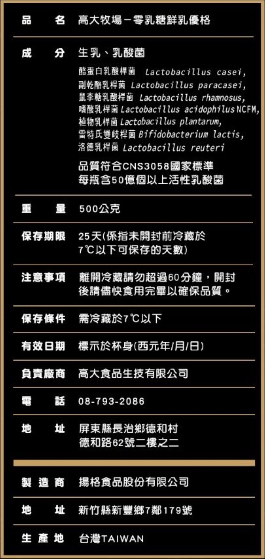 高大牧場秉持著對品質的堅持,推出全新零乳糖鮮乳優格。採用通過動物福利認證的優質鮮乳,搭配七種精選益生菌,為您獻上最純淨的優格享受。細緻滑順的口感,讓每一口都充滿幸福滋味