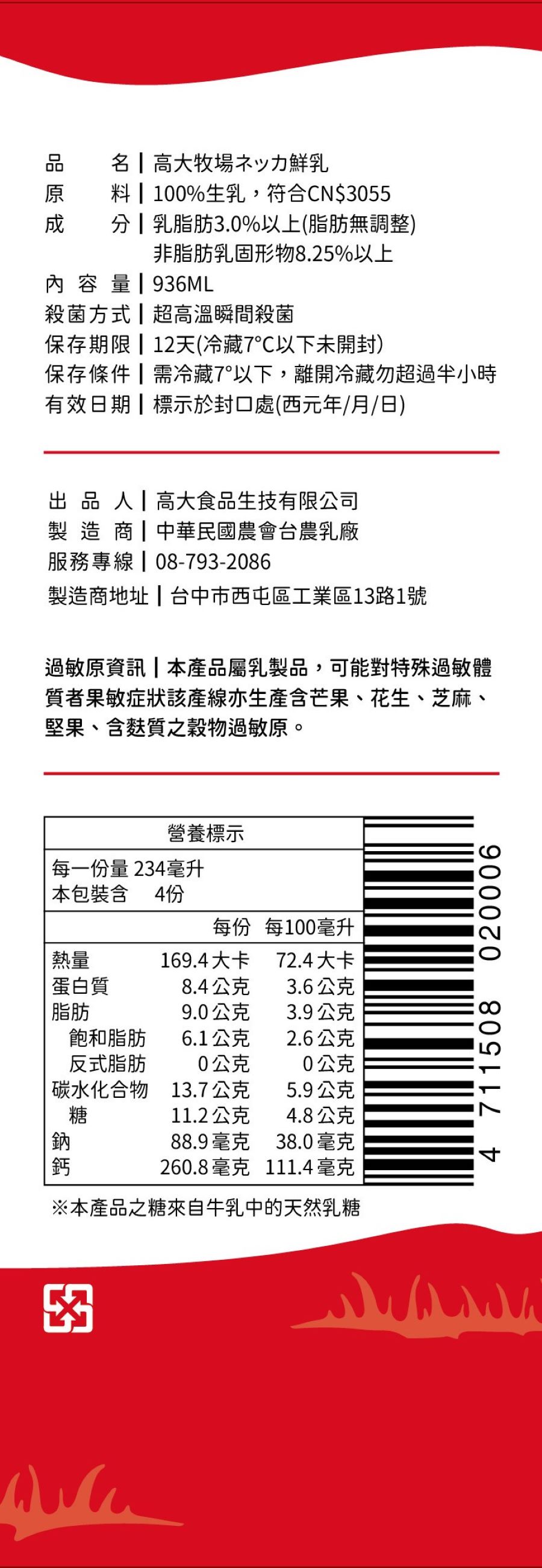 我們的鮮乳由 100%生乳,經由超高溫瞬間殺菌產出