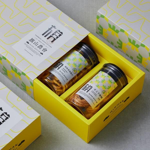這款點心選用了旗山在地的香蕉乾,口感香Q,咬下去那種彈性和天然的香蕉香氣會立刻在口中散開,內餡還搭配了土鳳梨酥,讓口感更豐富,因為我們特別減糖,讓它吃起來剛好,既不會過甜,又能品嚐到最純粹的香蕉味。