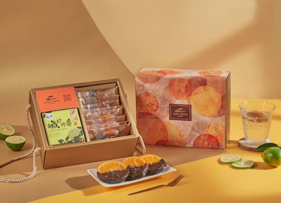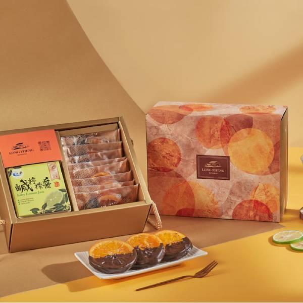 *禮盒中包含了精緻的法式巧克力橙片和特別調製的鹹檸檬醬。